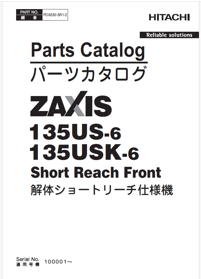 ZX135US-6, ZX135USK-6 (Short Reach Front.) Parts Catalog