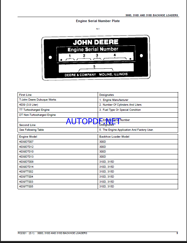 John Deere 300D 310D AND 315D BACKHOE LOADERS Parts Catalog (PC2321)