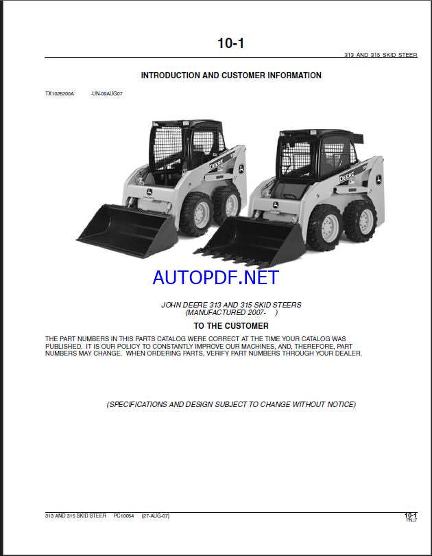 John Deere 313 AND 315 SKID STEERS Parts Catalog
