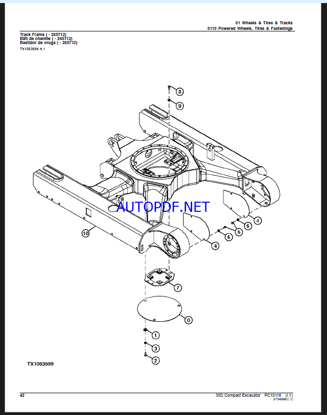 John Deere 35D Compact Excavator Parts Catalog (PC10116)