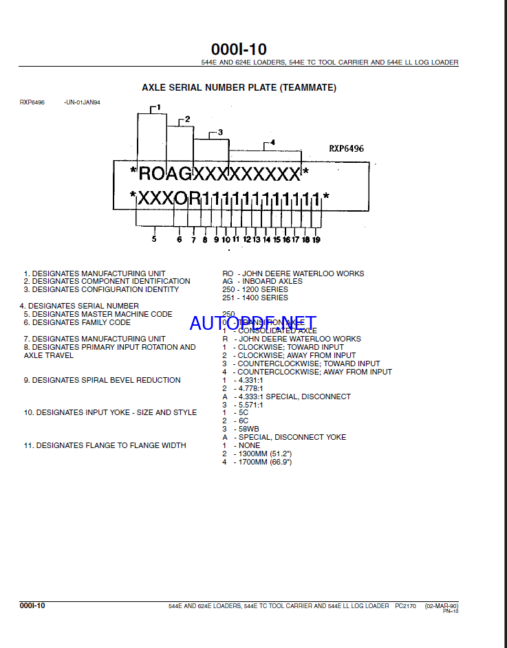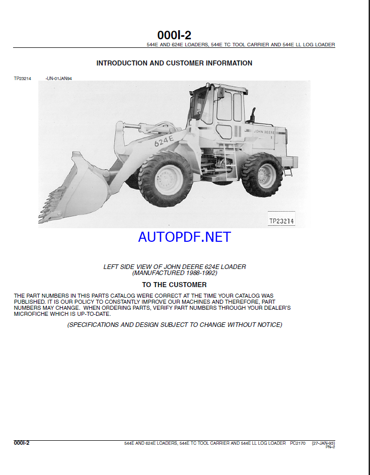 John Deere 544E AND 624E LOADERS, 544E TC TOOL CARRIER AND 544E LL LOG LOADER Parts Catalog