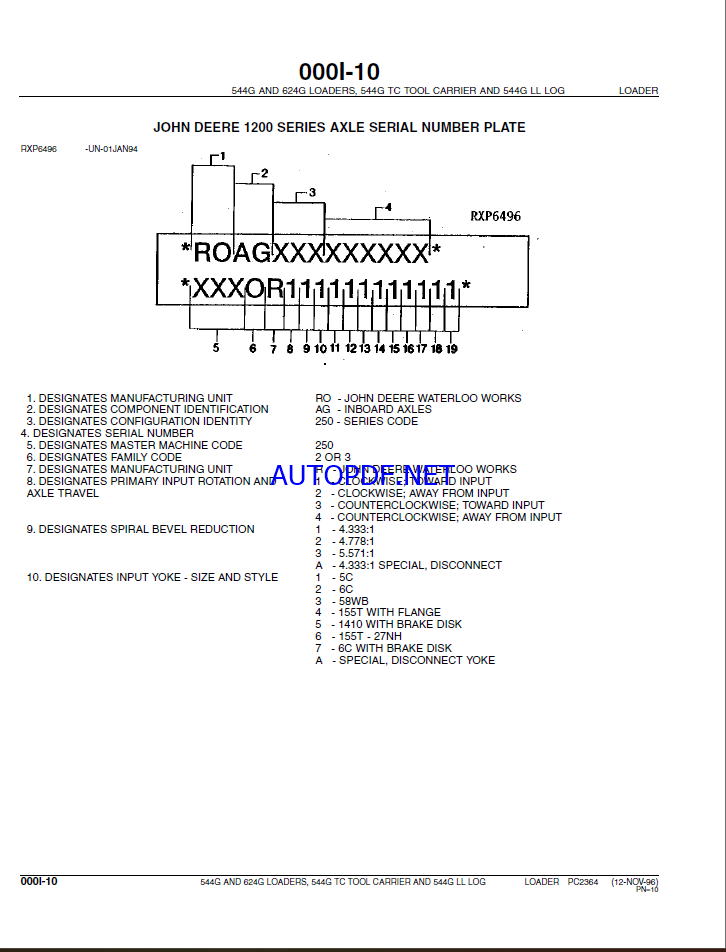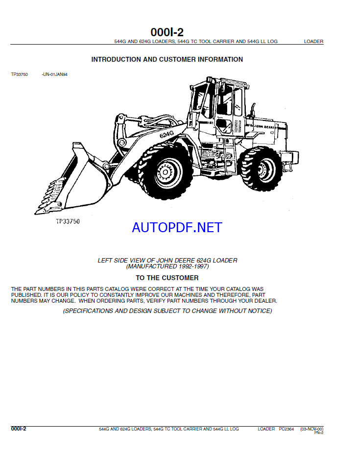 John Deere 544G AND 624G LOADERS, 544G TC TOOL CARRIER AND 544G LL LOG LOADER