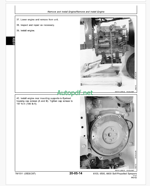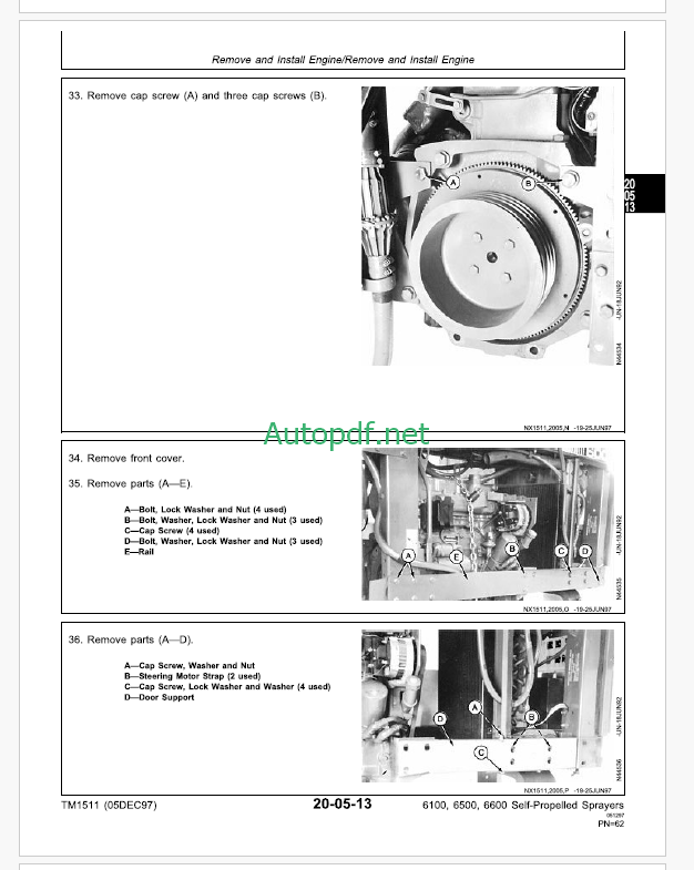 John Deere 6100 6500 6600 Self-Propelled Sprayers Technical Manual (TM1511)