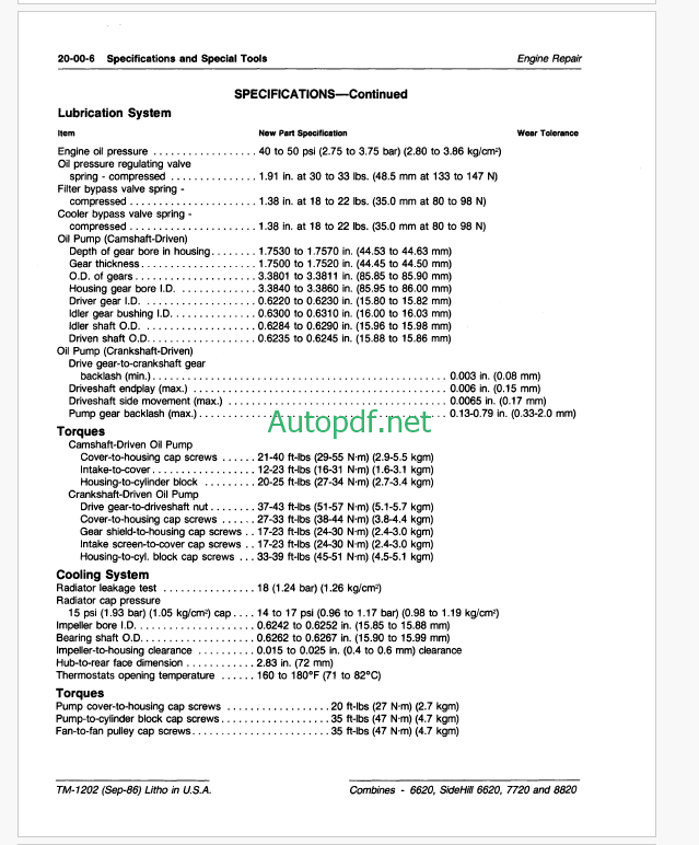John Deere 6620 Sidehill 6620 7720 and 8820 Combines Technical Manual (TM1202)