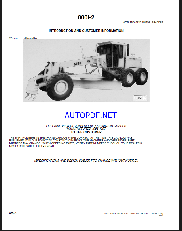 John Deere 670B AND 672B MOTOR GRADERS
