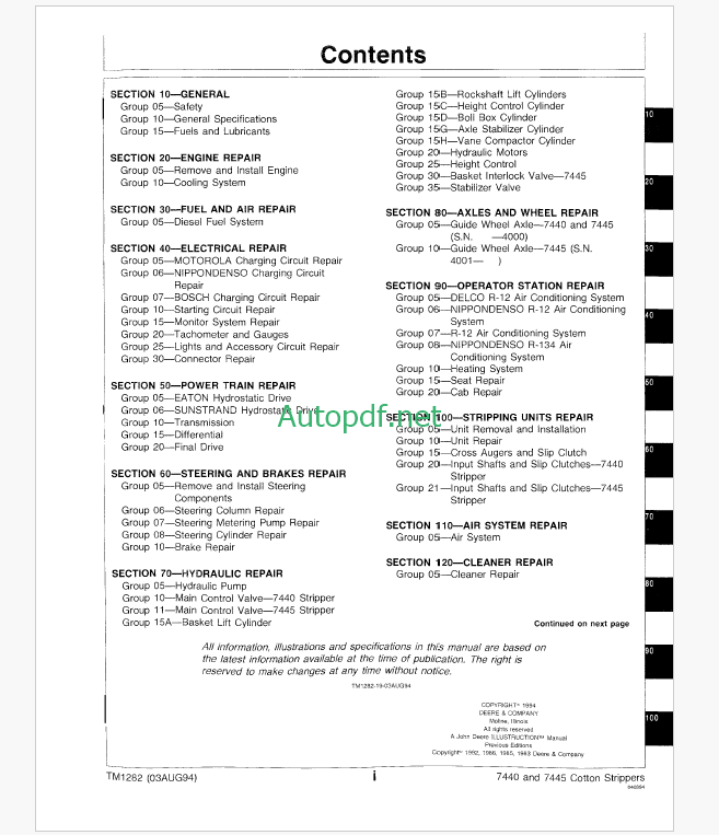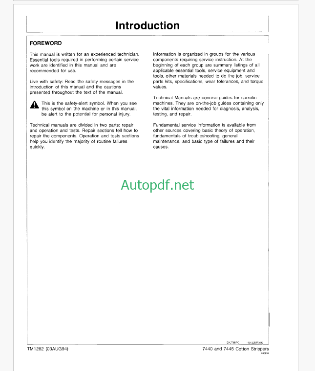 John Deere 7440 and 7445 Cotton Strippers Technical Manual (TM1282)