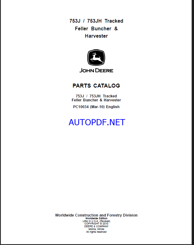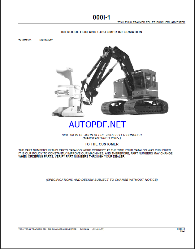 John Deere 753J, 753JH TRACKED FELLER BUNCHER & HARVESTER