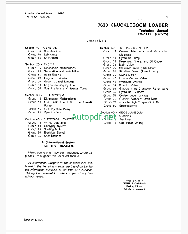 John Deere 7630 Knuckleboom Loader Technical Manual (TM1147)