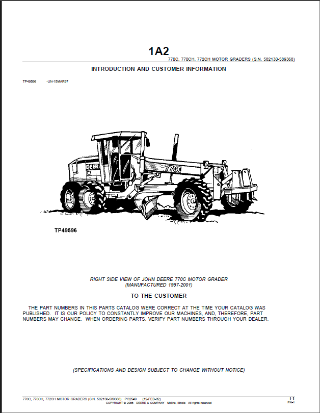 John Deere 770C, 770CH AND 772CH MOTOR GRADERS