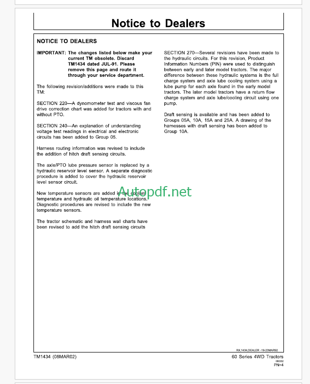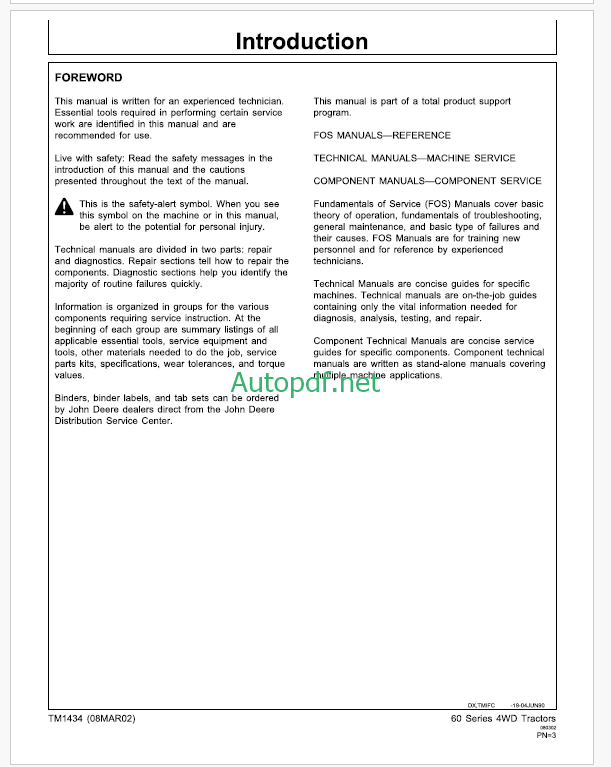 John Deere 8450 8650 and 8850 Tractor Technical Manual (TM1256)
