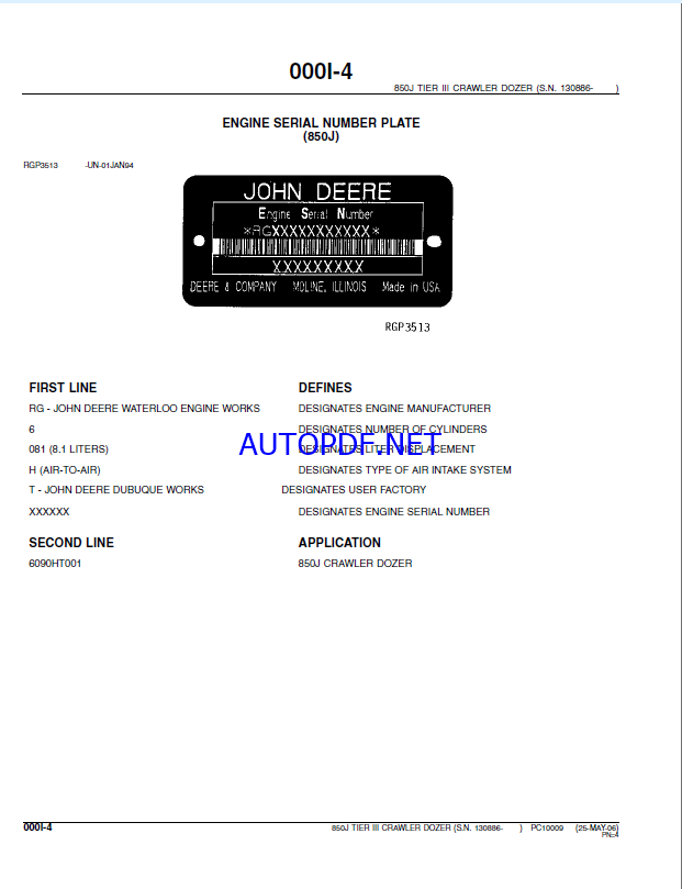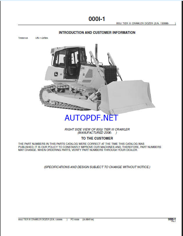 John Deere 850J TIER III CRAWLER DOZER Parts Catalog
