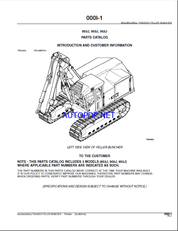 John Deere 853J, 903J, 953J Track Feller Buncher