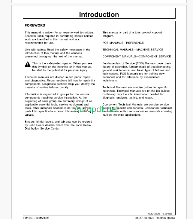 John Deere 8570 8770 8870 and 8970 Tractors Repair Technical Manual (TM1549)