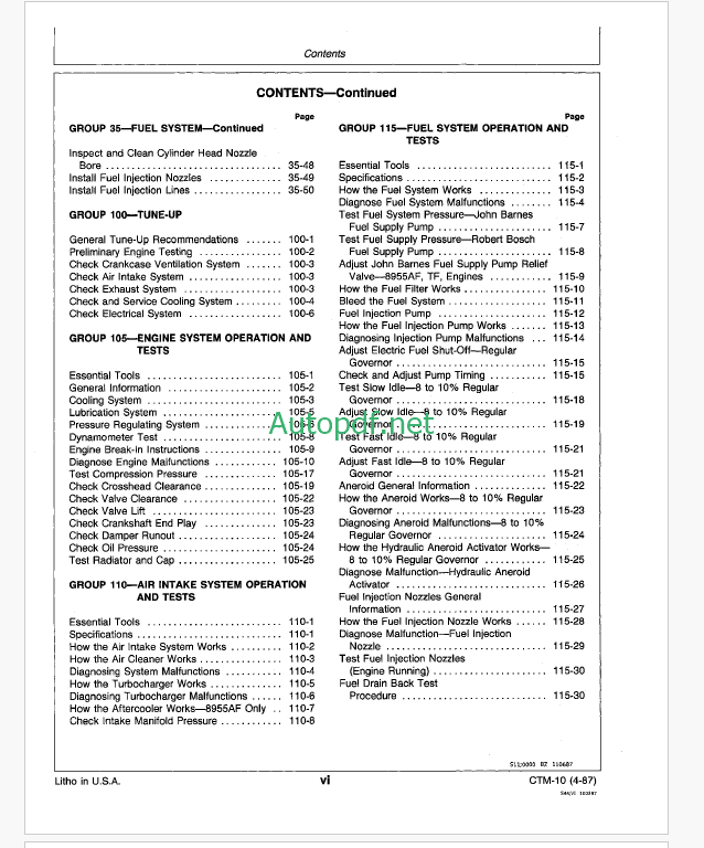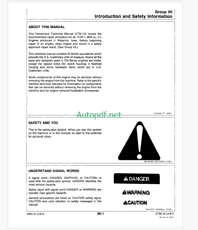 John Deere 8955 Engines Component Technical Manual (CTM10)