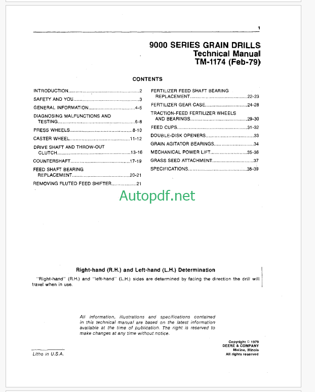 John Deere 9000 Series Grain Drills Technical Manual (TM1174)