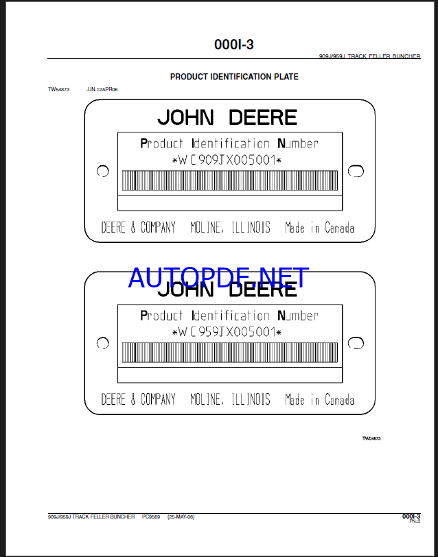 John Deere 909J, 959J (Leveler) Track Feller Buncher