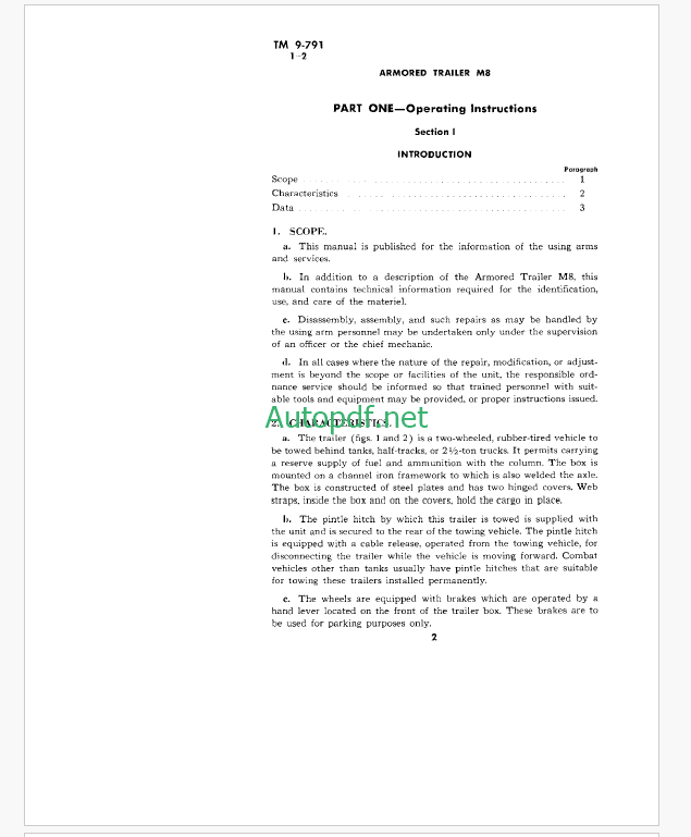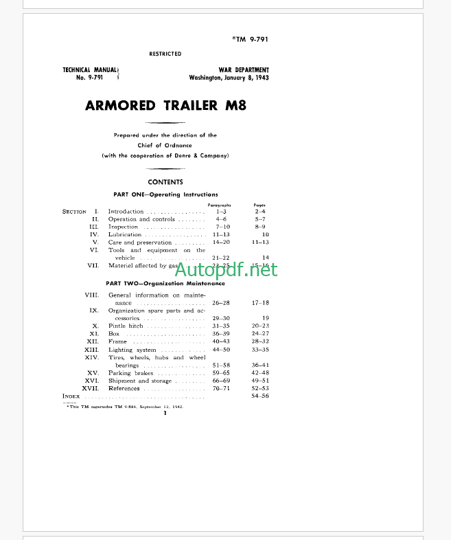 John Deere Armored Trailer M8 Technical Manual (TM9791)