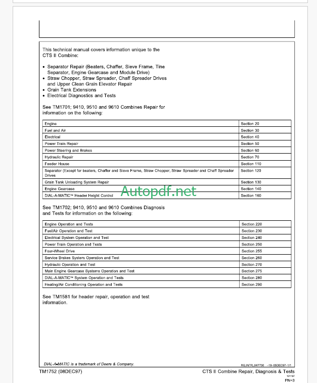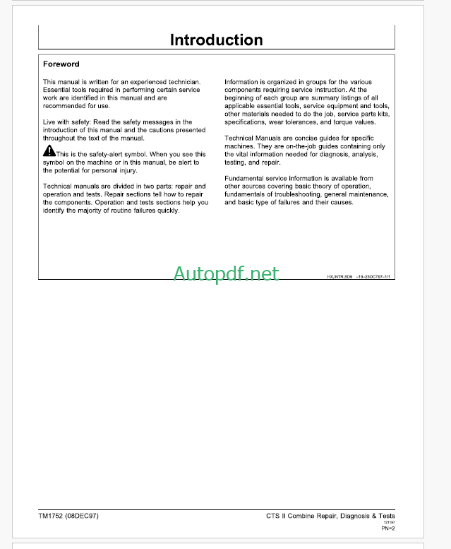 John Deere CTS II Combine Repair Diagnosis and Tests Technical Manual (TM1752)