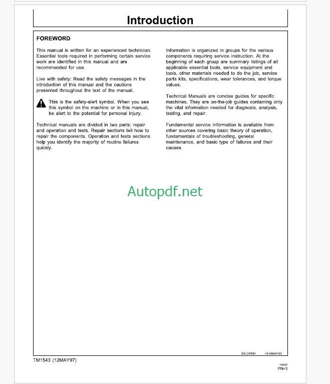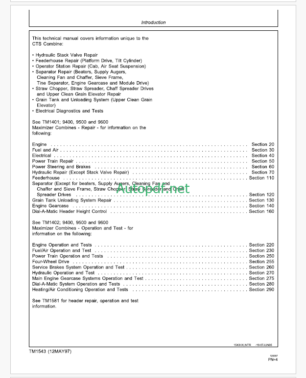 John Deere CTS Rice Combine Repair Operation and Tests Technical Manual (TM1543)