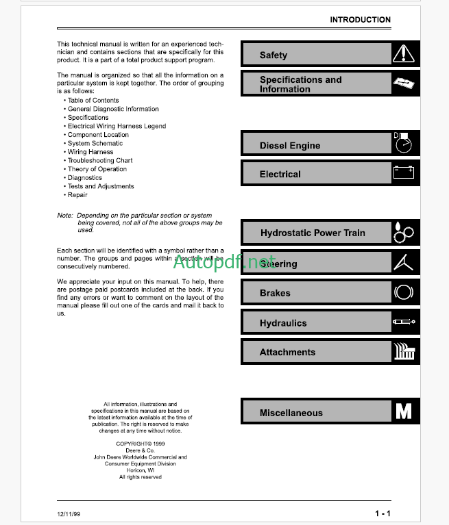 John Deere F735 Front Mower Tractors Technical Manual (TM1597)