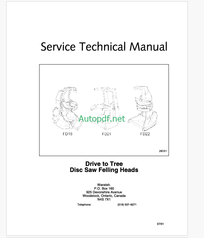 John Deere FD Series Heads Drive to Tree Disc Saw Heads Technical Manual (TMF381707)