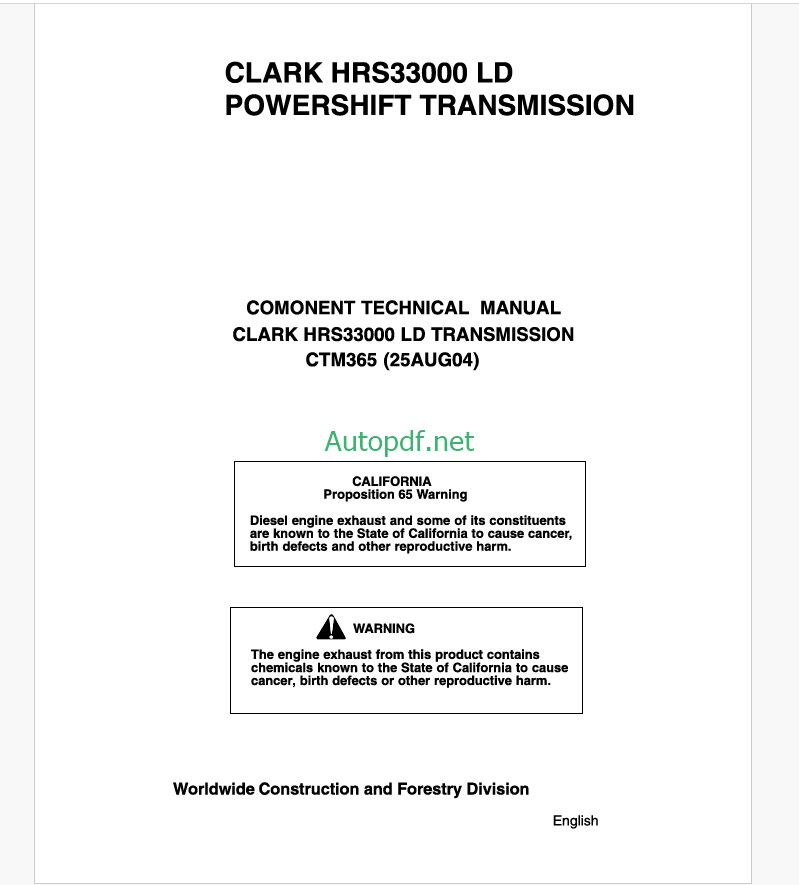 John Deere HRS33000 LD Powershif Transmission Component Technical Manual (CTM365)