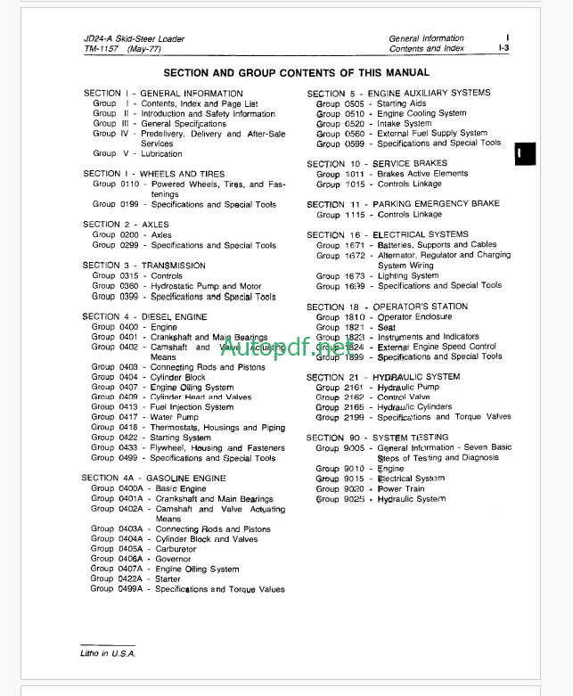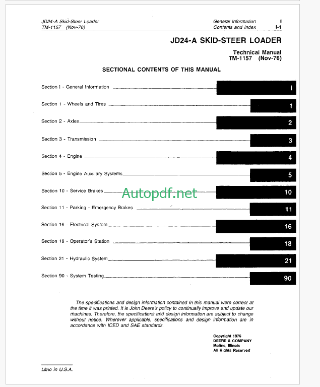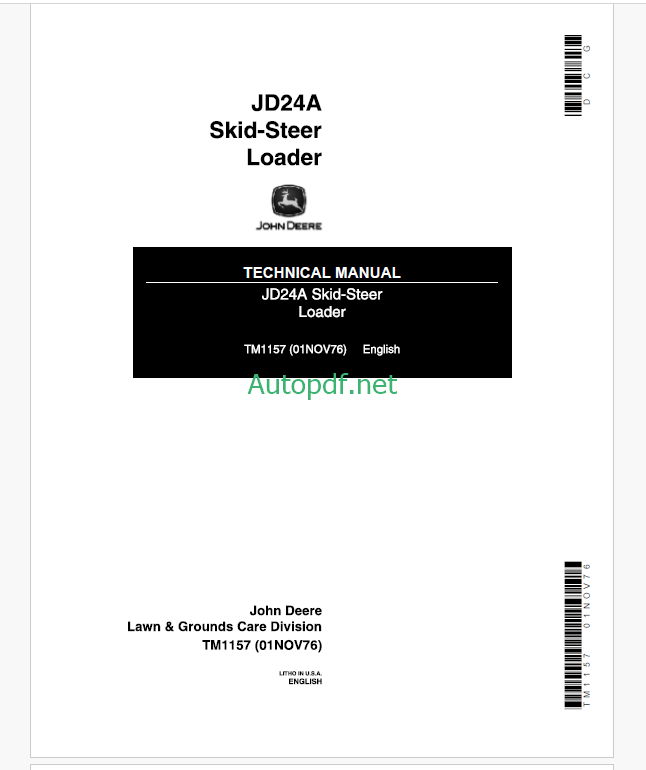 John Deere JD24A Skid Steer Loader Technical Manual (TM1157)