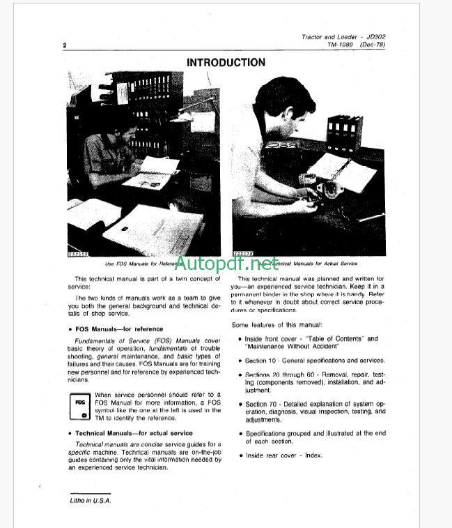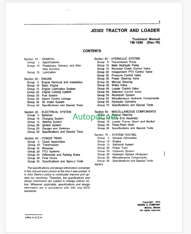 John Deere JD302 Tractor and Loader Technical Manual (TM1089)