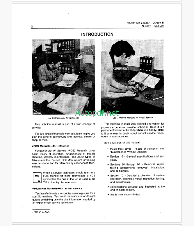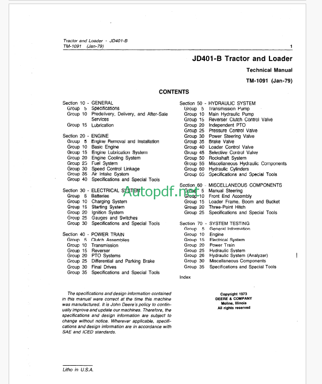 John Deere JD401-B Tractor and Loader Technical Manual (TM1091)