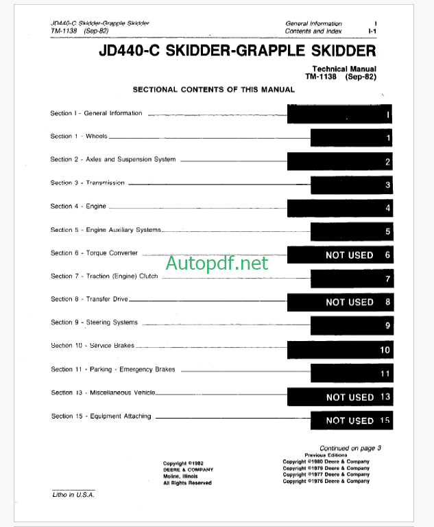 John Deere JD440-C Skidder and Grapple Skidder Technical Manual (TM1138)