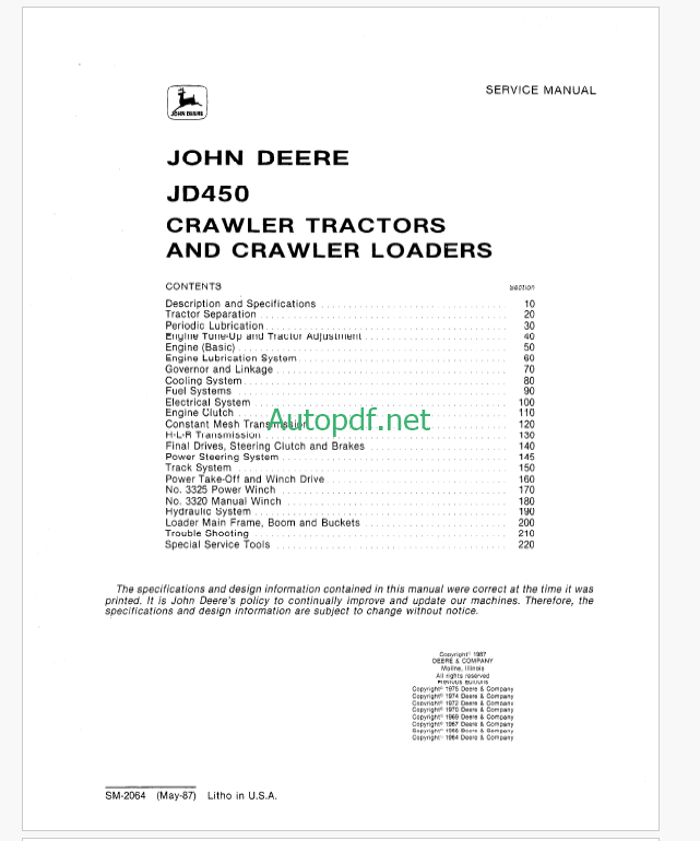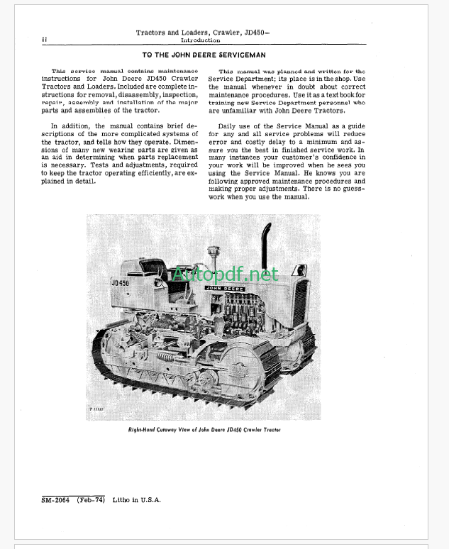 John Deere JD450 Crawler Tractors and Crawler Loaders Service Manual (SM2064)