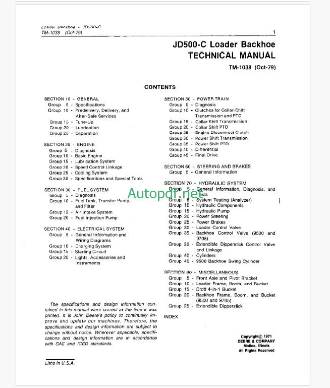 John Deere JD500-C Loader Backhoe Technical Manual (TM1038)