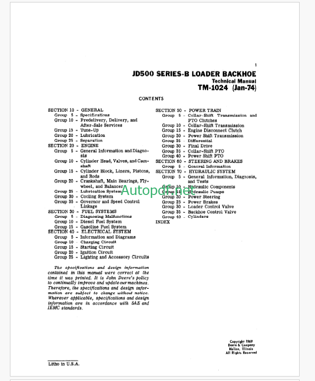 John Deere JD500 Series-B Loader Backhoe Technical Manual (TM1024)