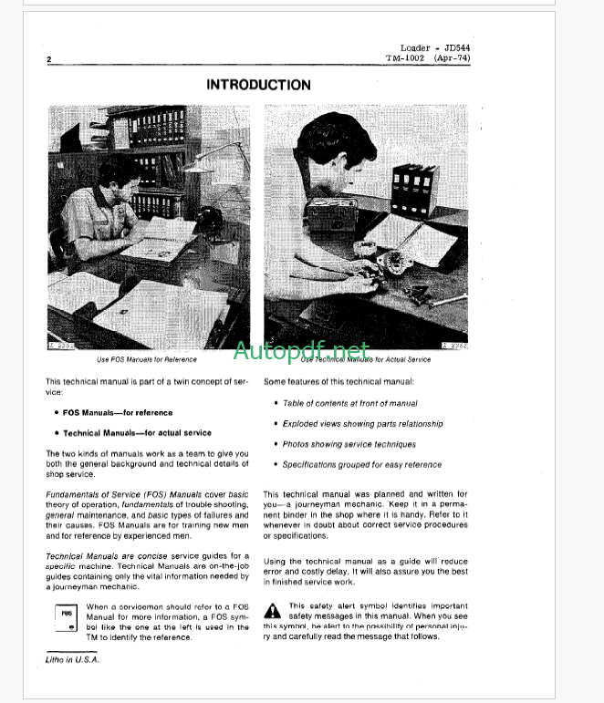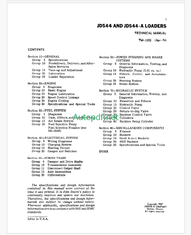 John Deere JD544 and JD544-A Loaders Technical Manual (TM1002)