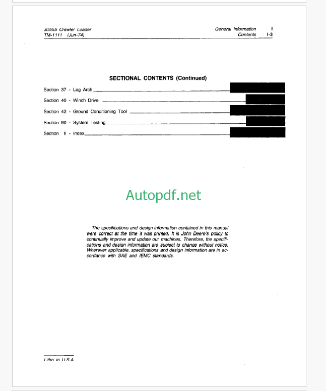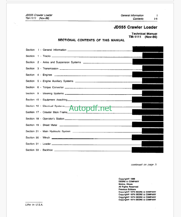 John Deere JD555 Crawler Loader Technical Manual (TM1111)