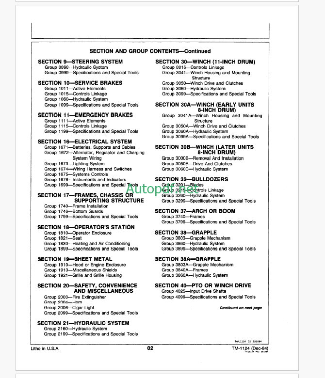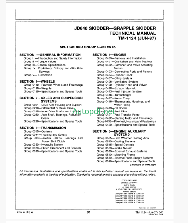 John Deere JD640 Skidder-Grapple Skidder Technical Manual (TM1124)