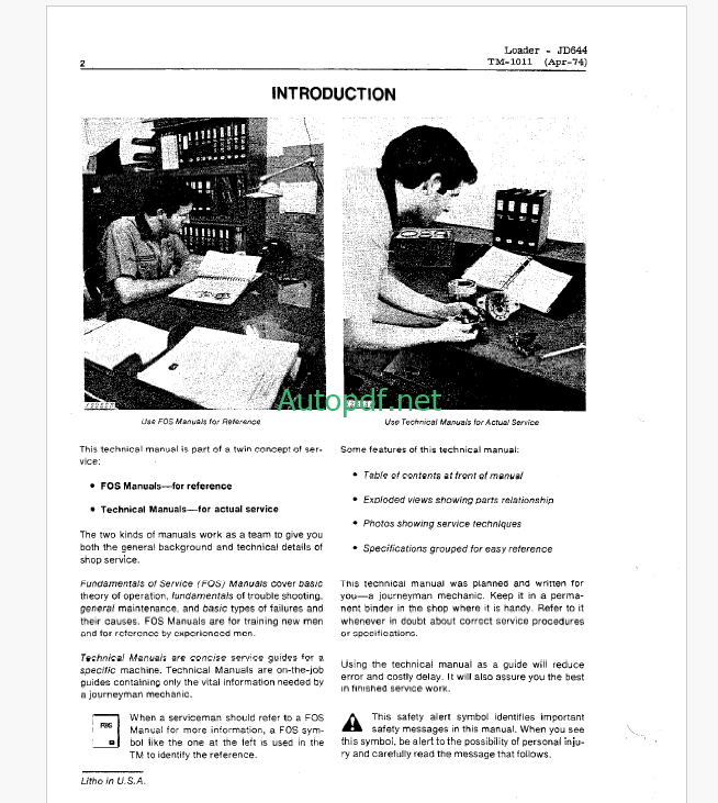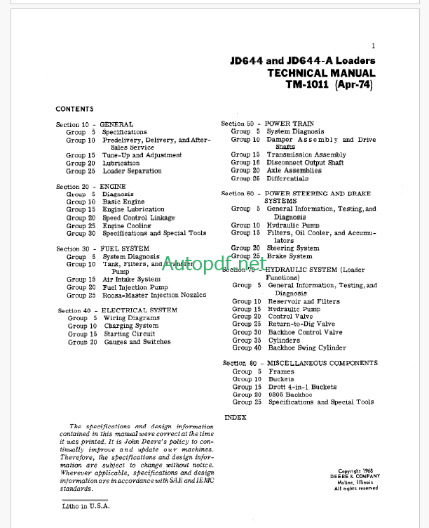 John Deere JD644 and JD644-A Loaders Technical Manual (TM1011) John Deere JD644 and JD644-A Loaders Technical Manual (TM1011)