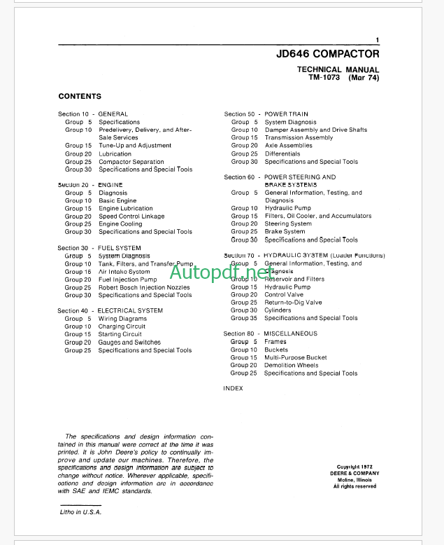 John Deere JD646 Compactor Technical Manual (TM1073)