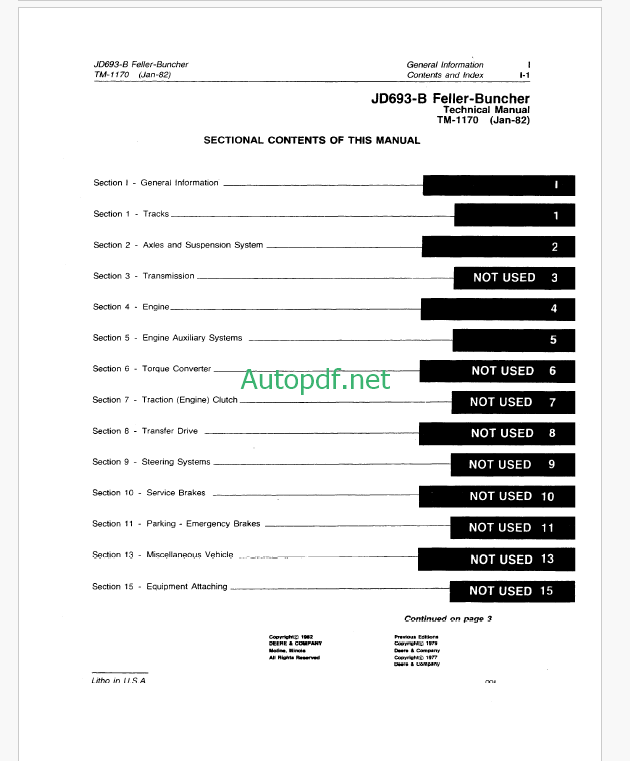 John Deere JD693-B Feller-Buncher Technical Manual (TM1170)