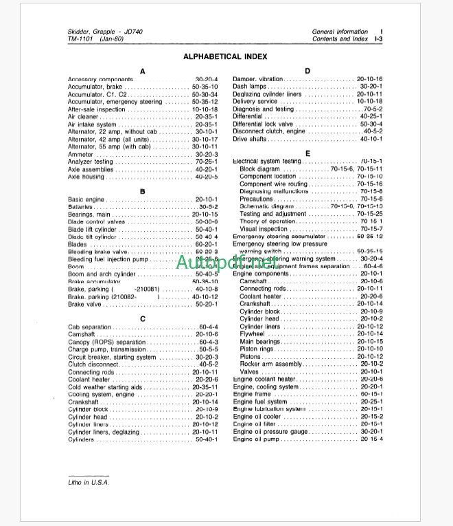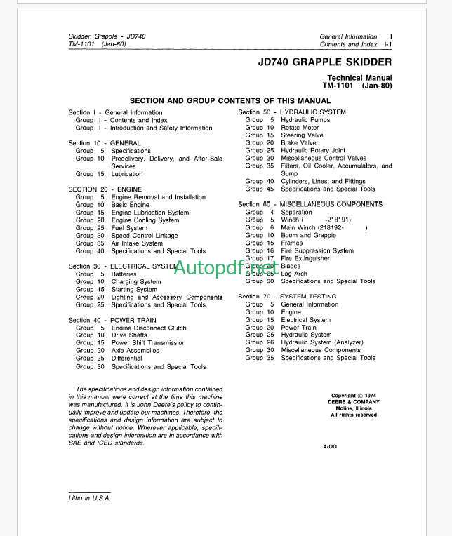 John Deere JD740 Grapple Skidder Technical Manual (TM1101)