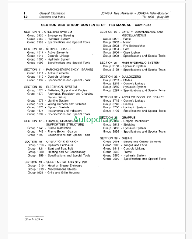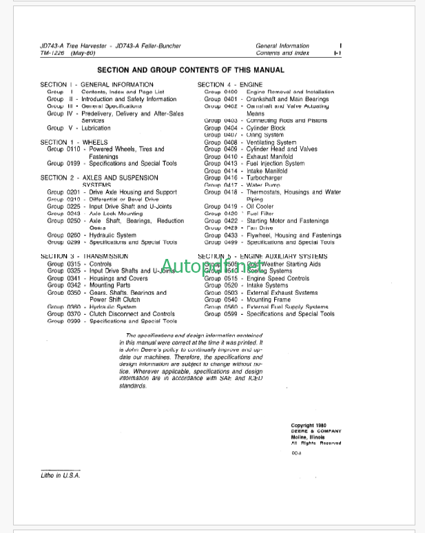 John Deere JD743-A Tree Harvester JD743-A Feller Buncher Technical Manual (TM1226)