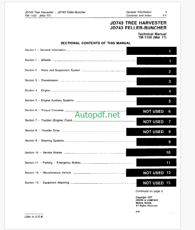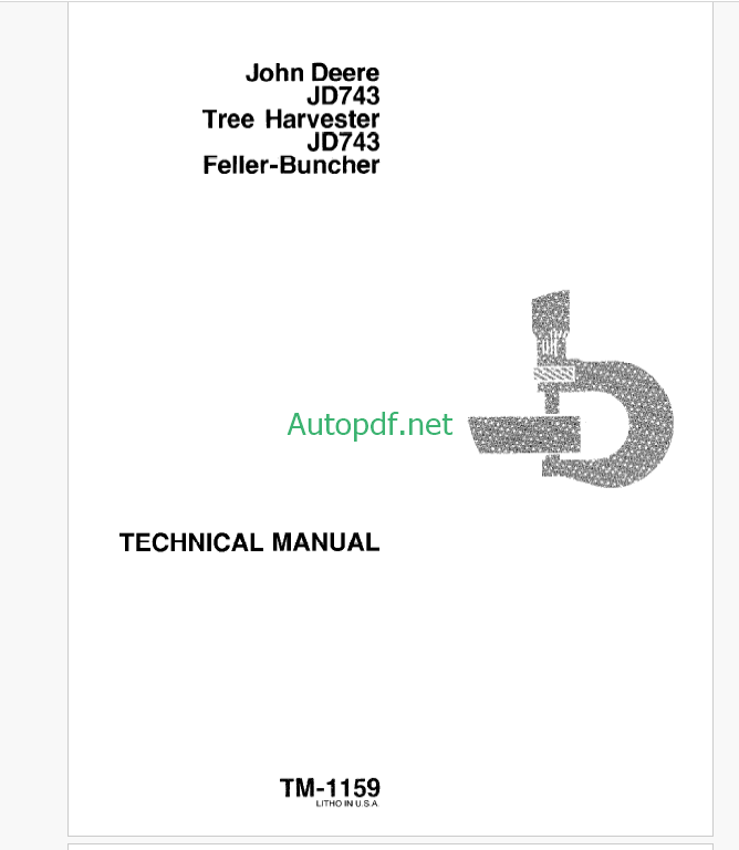 John Deere JD743 Tree Harvester and Feller- Buncher Technical Manual (TM1159)