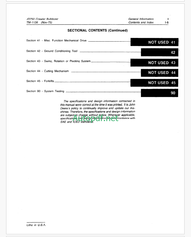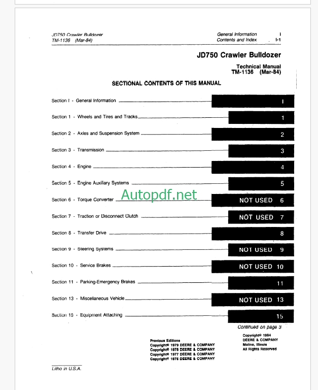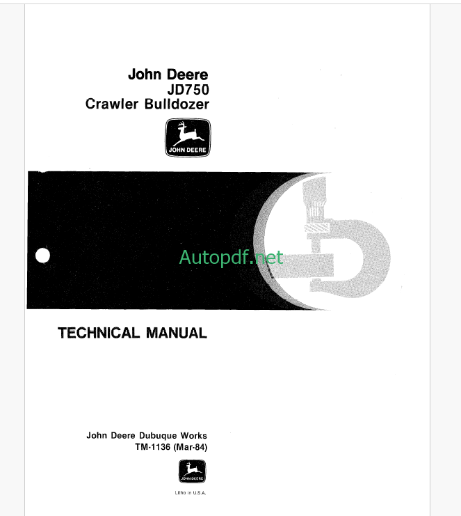 John Deere JD750 Crawler Bulldozer Technical Manual (TM1136)
