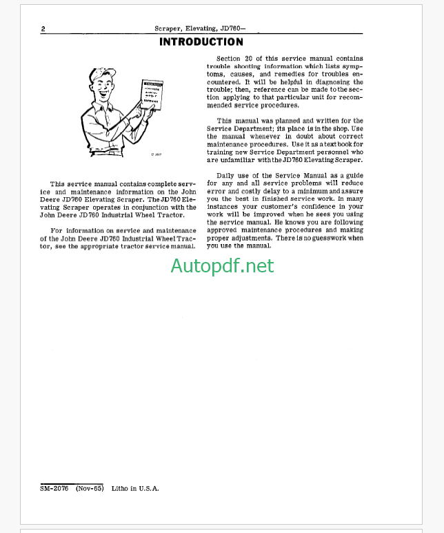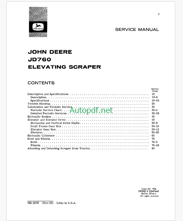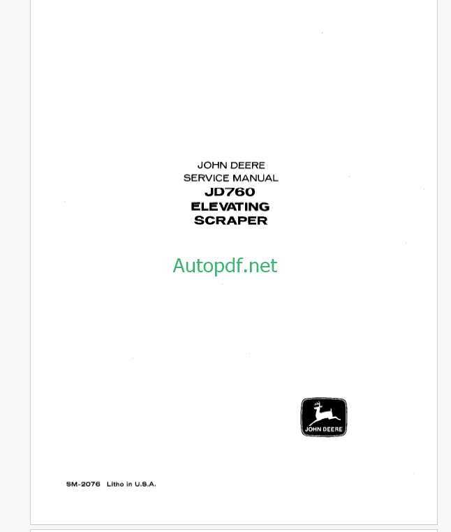 John Deere JD760 Elevating Scraper Service Manual (SM2076)