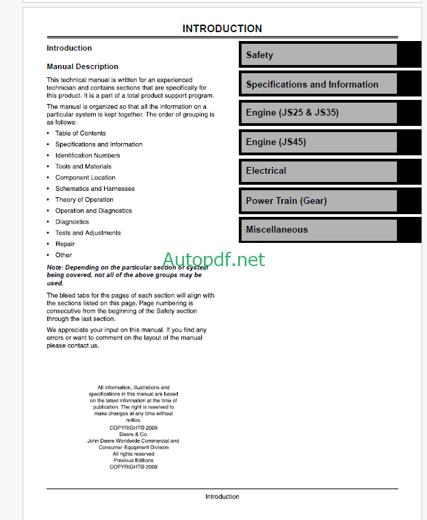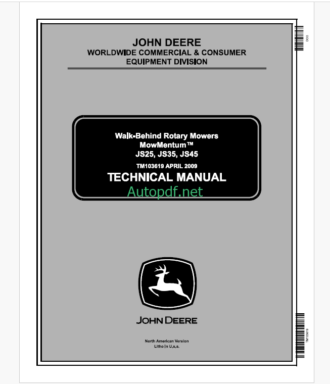 John Deere JS25, JS35, JS45 Walk-Behind Rotary Mowers MowMentumTM Technical Manual (TM103619)