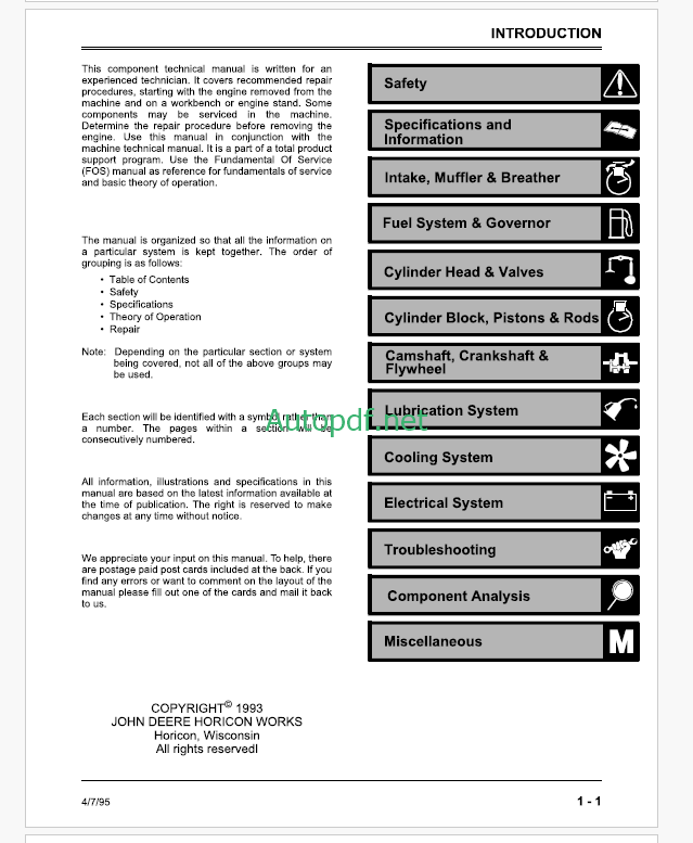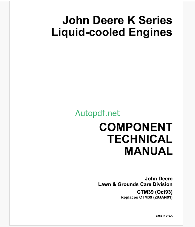 John Deere K Series Liquid-cooled Engines Component Technical Manual (CTM39)
