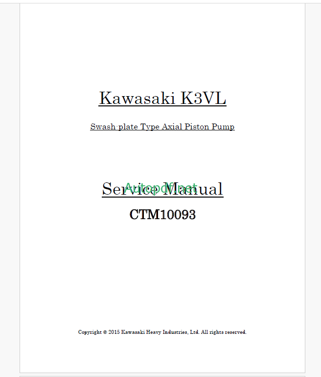 John Deere Kawasaki K3VL Swash plate Type Axial Piston Pump Service Manual (CTM10093)