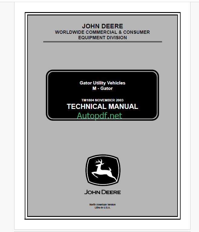 John Deere M-Gator Gator Utility Vehicles Technical Manual (TM1804)