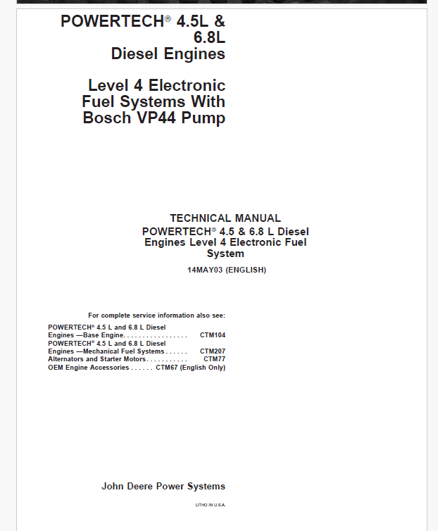 John Deere Planter Monitoring Systems Technical Manual (TM1270)