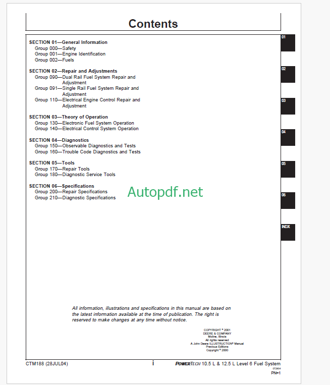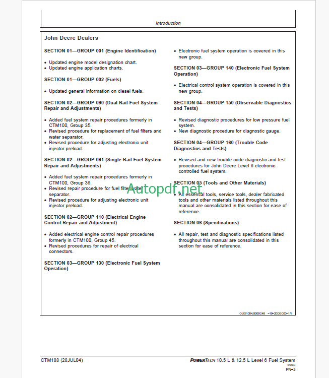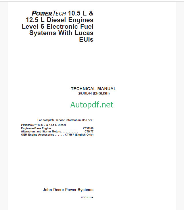 John Deere POWERTECH 10.5 L & 12.5 L Diesel Engines Level 6 Electronic Fuel Systems With Lucas EUIs Technical Manual (CTM188)